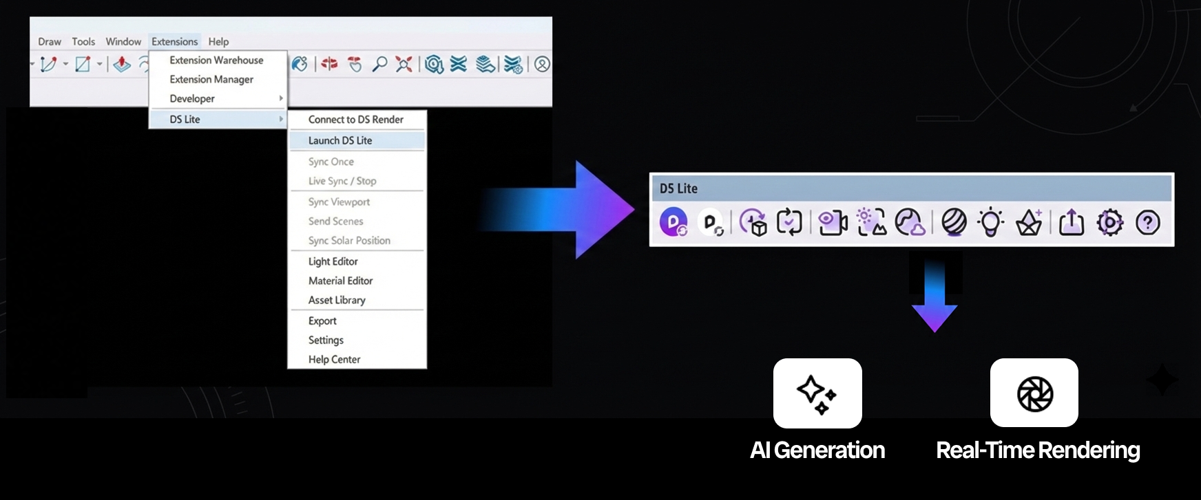 D5 Lite is an AI-native rendering plugin for SketchUp that combines real-time visualization with generative AI. Its goal is to give designers visual feedback early in the design process, without leaving their modeling environment.