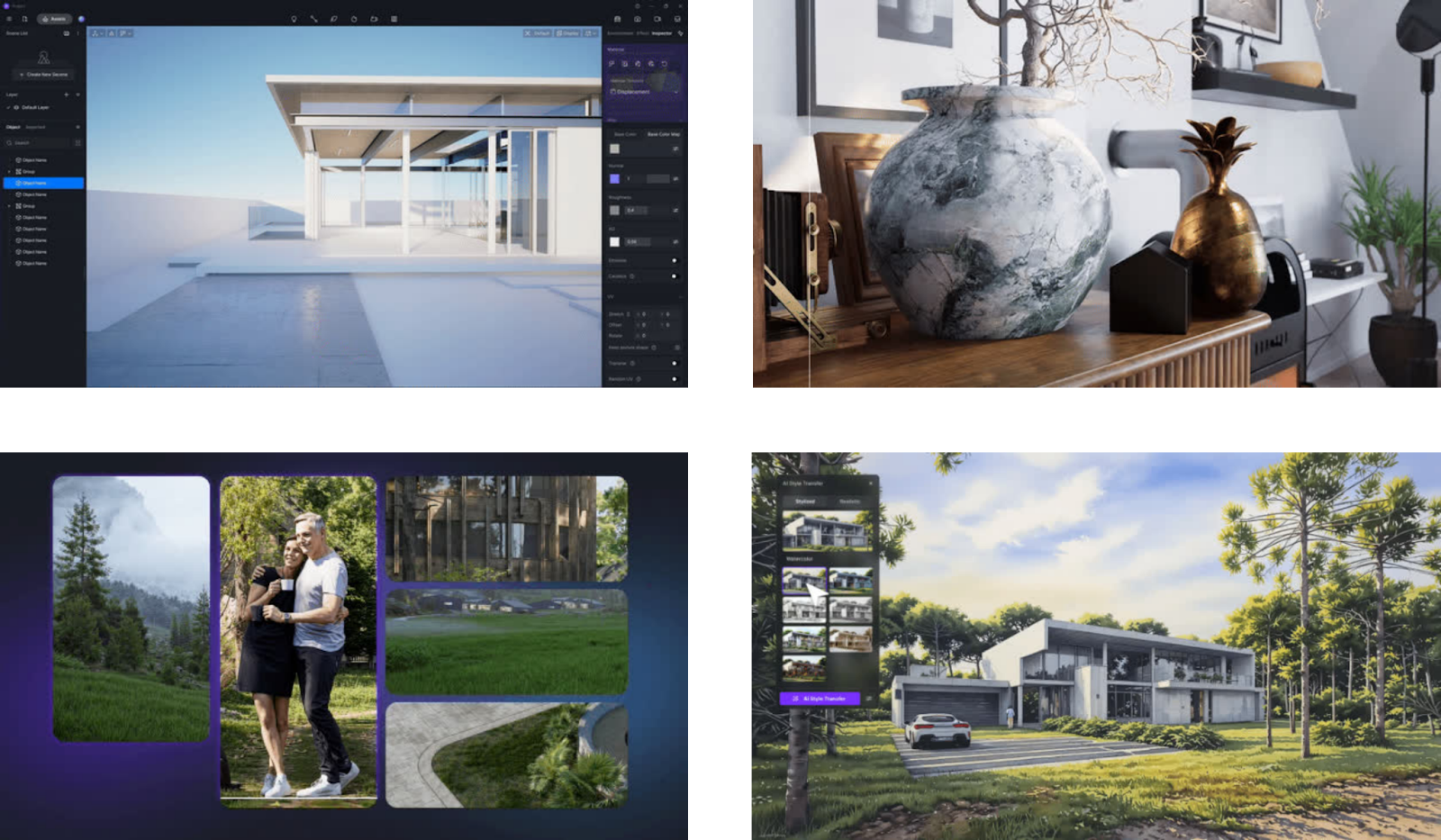 The integration of AI also elevates your workflow in D5 Render to the next level. With built-in tools, including the powerful AI Enhancer, you can quickly refine renders and effortlessly generate new styles and atmospheres.