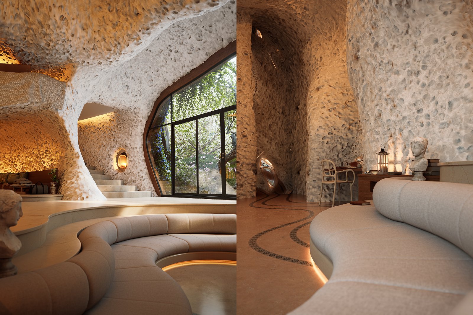 To quickly fill an interior space with sophisticated furniture and lighting, there is an easy way: use the ready-made Interior Parallax models from the D5 Library and place them exactly inside the windows.