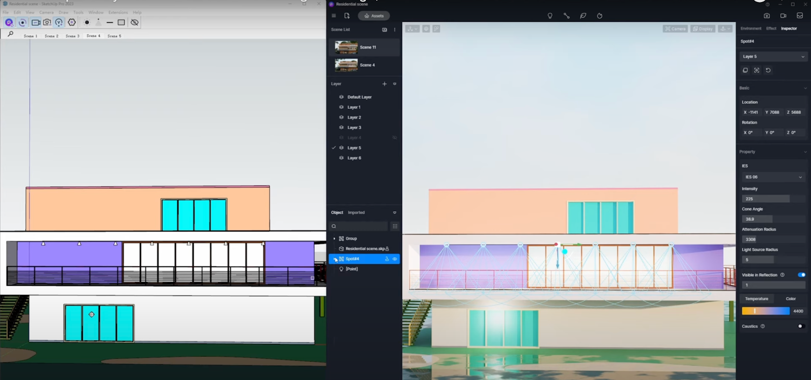 Your SketchUp stays open and updates live while you work in D5. Change a wall in SketchUp? You see it immediately in D5.